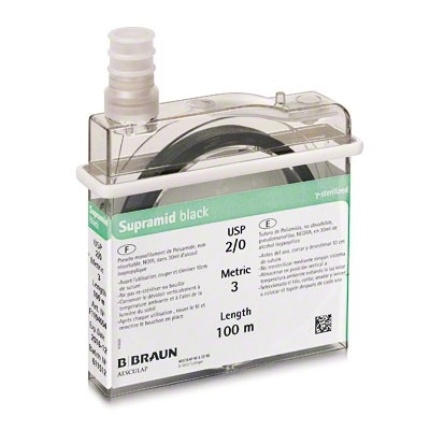Supramid – fir de sutura neresorbabil, exclusiv pentru uz veterinar, alb, pseudo-monofilament, poliamida, 2/0 USP (3 EP), L=100 metri, fara