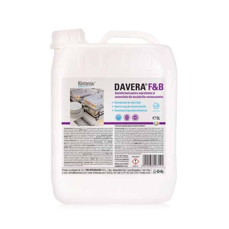 DAVERA® F&B este un dezinfectant, igienizant si dezodorizant eficient, pentru suprafete in general, dar si pentru suprafete si echipamente in contact cu alimentele. Este eficient si confera performante fungicide, bactericide si virucide.