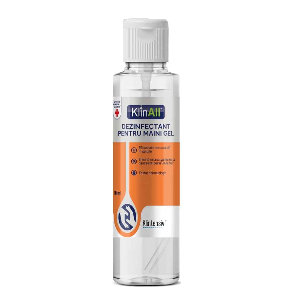 KlinAll® este un gel dezinfectant pentru mâini testat conform normelor UE în vigoare, care înlătură germenii în doar 30 secunde. Se poate utiliza în orice moment al zilei, ori de câte ori este nevoie, atunci când apa și săpunul nu sunt la îndemână, în s