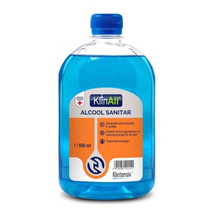 KlinAll® este un gel dezinfectant pentru mâini testat conform normelor UE în vigoare, care înlătură germenii în doar 30 secunde. Se poate utiliza în orice moment al zilei, ori de câte ori este nevoie, atunci când apa și săpunul nu sunt la îndemână, în special în caz de epidemii bacteriene și/sau virale. Substanţele protectoare şi hidratante pentru piele previn apariţia zonelor uscate şi senzaţia de piele crăpată. Produsul are acțiune biocidă certificată. Avantajele produsului: gel dezinfectant profesional (85% alcool) actiune virucida si bactericida certificata efect anti-microbian si proprietati excelente de protectie a pielii potrivit pentru dezinfectare igienica (30 sec) sau cu efect virucid (3 min) uscare rapida; nu necesita clatire fara senzatie lipicioasa pe piele dupa aplicare testat conform normelor UE in vigoare Grupa principala 1: Dezinfectante si produse biocide Tip de produs TP1: este un produs biocid destinat igienei umane. Gel dezinfectant pentru maini, hidroalcoolic. Categoria de utilizatori: institutional, populatie. Atentionari: Acest produs este destinat exclusiv utilizarii in urma citirii si intelegerii normelor de siguranta din domeniu. Este recomandata depozitarea in spatii inchise, curate, bine aerisite, cu temperaturi cuprinse intre + 5 °C si + 30°C. Fiecare lot de livrare va fi insotit de documentul de certificare a calitatii, intocmit conform dispozitiilor legale in vigoare, respectiv declaratia de conformitate intocmita pe baza fiselor tehnice, a buletinelor de analiza si a avizului sanitar.