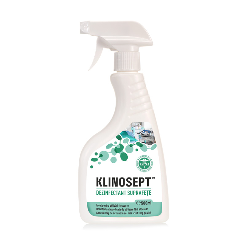 KLINOSEPT® – dezinfectant rapid pentru suprafete RTU este un produs gata preparat, conceput pentru dezinfectare rapida prin pulverizarea si stergerea suprafetelor, pieselor de mobilier si a instrumentelor utilizate in diverse domenii profesionale.