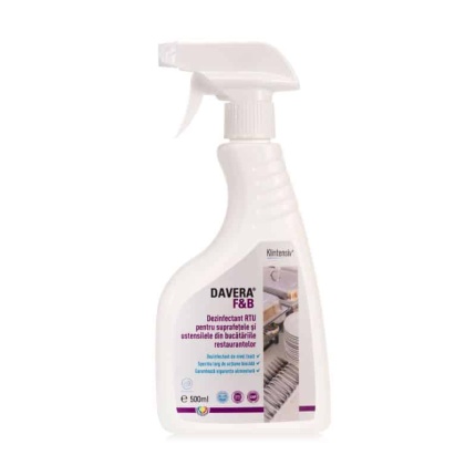 In timpul unui proces de curatare si dezinfectare, baia necesita o atentie aparte, mai ales zona din jurul toaletei unde se strang o serie de germeni si bacterii. KLINTENSIV® DEZINFECTANT WC este conceput in special pentru igienizarea rapida a vasului de toaleta. Se poate utiliza, atat pentru vasul de toaleta de acasa, cat si pentru toaletele publice sau pentru cele din spatiile de birouri. Aviz emis de Comisia Nationala pentru produse biocide: Nr. 2266BIO/02/12.24 Avantajele produsului: igienizeaza eficient vasul de toaleta elimina germenii rapid nu contine clor nu pateaza nu decoloreaza nu albeste are actiune virucida, levuricida, fungicida si si bactericida certificata testat conform normelor UE in vigoare Grupa principala 2: Dezinfectante si produse biocide Tip de produs 2: – Este un produs biocid destinat dezinfectarii suprafetelor (toalete) Substante active: Clorura de didecildimetilamoniu, concentratie in unitati metrice 0.34% Compusi de amoniu cuaternar, benzyl-C12-C18-alchildimetil, cloruri, concentratie in unitati metrice 0.09% Categorii utilizatori: profesionali, populatie Produsul se poate utiliza pentru dezinfectarea vaselor de toaleta din spatii birouri, spatii comerciale, sedii bancare, parcuri si centre de agrement, dar si de catre utilizatori casnici. Indicatii de utilizare: Scop: dezinfectarea prin stergere/pulverizare a vaselor de toaleta Mod folosire: Pentru dezinfectarea de nivel mediu si scazut se utilizeaza solutie de lucru nediluata, timp de 5 minute; iar pentru dezinfectarea de nivel inalt timpul de actiune este de 60 minute. Se pulverizeaza produsul in vasul de toaleta, acoperind toate zonele, capacul si vasul de stocare apa (a nu se uita zonele care sunt atinse cel mai des). Se lasa sa actioneze intre 5-60 minute (in functie de contaminarea microbiologica), apoi se clateste cu apa. A se folosi numai dupa ce au fost citite si intelese instructiunile de utilizare. Este recomandata depozitarea in spatii inchise, curate, bine aerisite, cu temperaturi cuprinse intre + 5 °C si + 30°C. Fiecare lot de livrare va fi insotit de documentul de certificare a calitatii, intocmit conform dispozitiilor legale in vigoare, respectiv declaratia de conformitate intocmita pe baza fiselor tehnice, a buletinelor de analiza si a avizului sanitar.