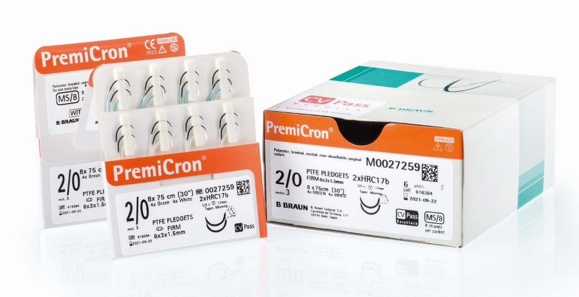 Premicron Green fir de sutura neresorbabil, verde, multifilament acoperit, poliester, 2/0 USP (3 EP), L=75 cm, ac triunghiular standard, curbura 1/2, 26 mm. Cutie cu 36 fire *Imagine generala cu titlu de prezentare
